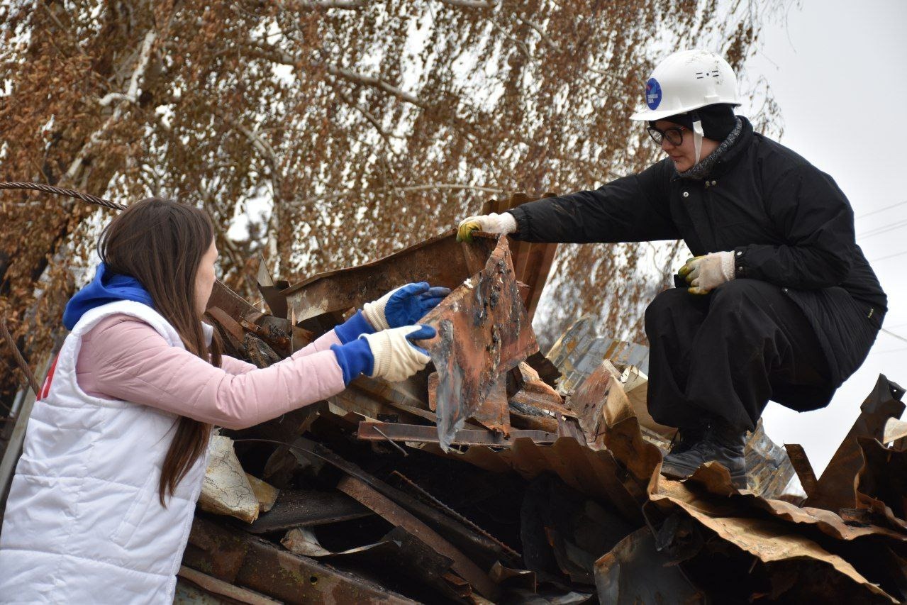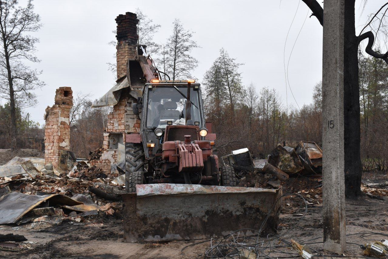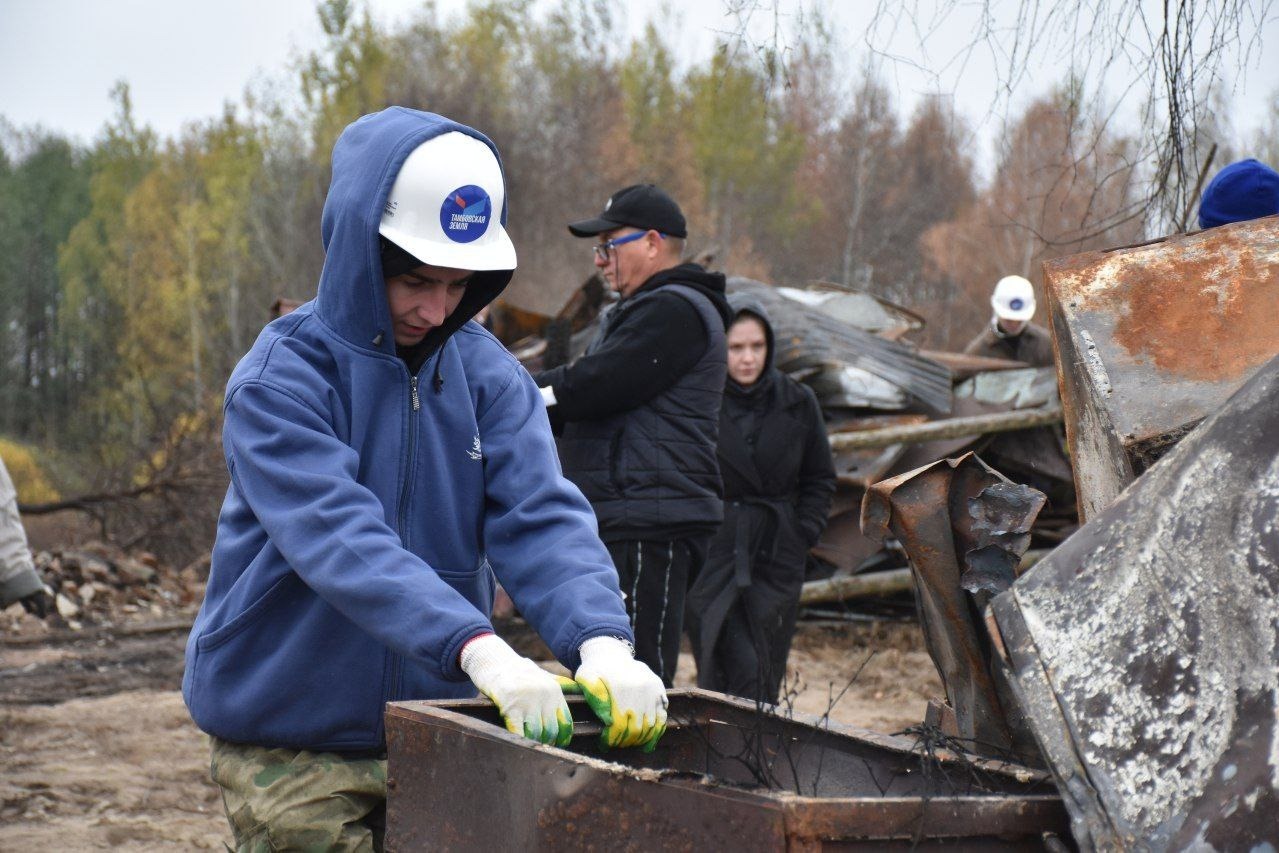 По поручению Главы региона Максима Егорова десятки волонтёров совместно с сотрудниками МЧС провели разборы завалов на местах пожара и расчистили подъездные пути в посёлке.