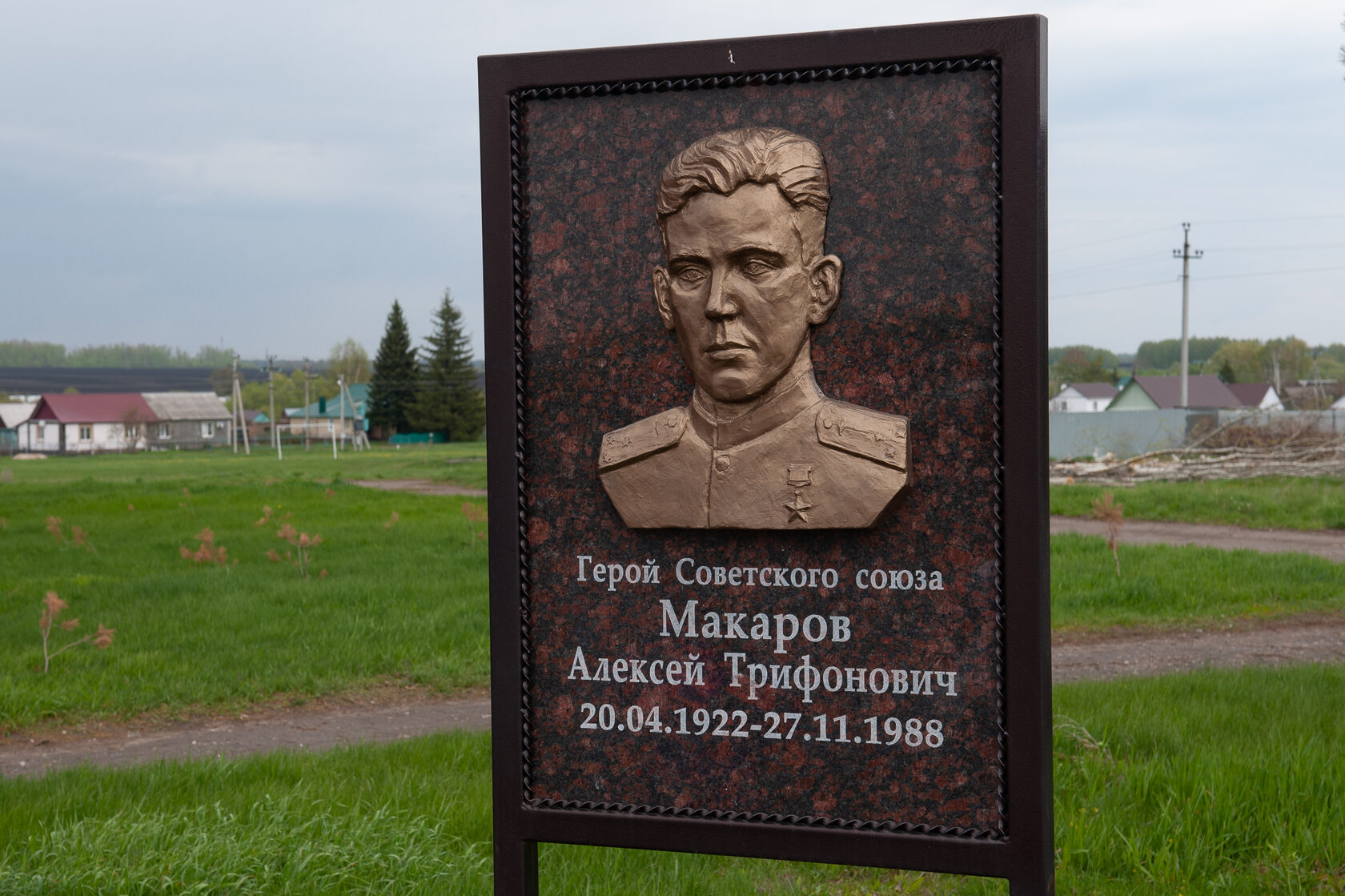 Барельеф Алексея Макарова установлен в селе Беломестная Криуша.