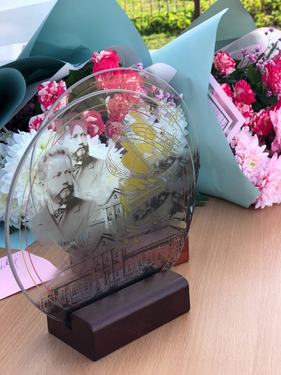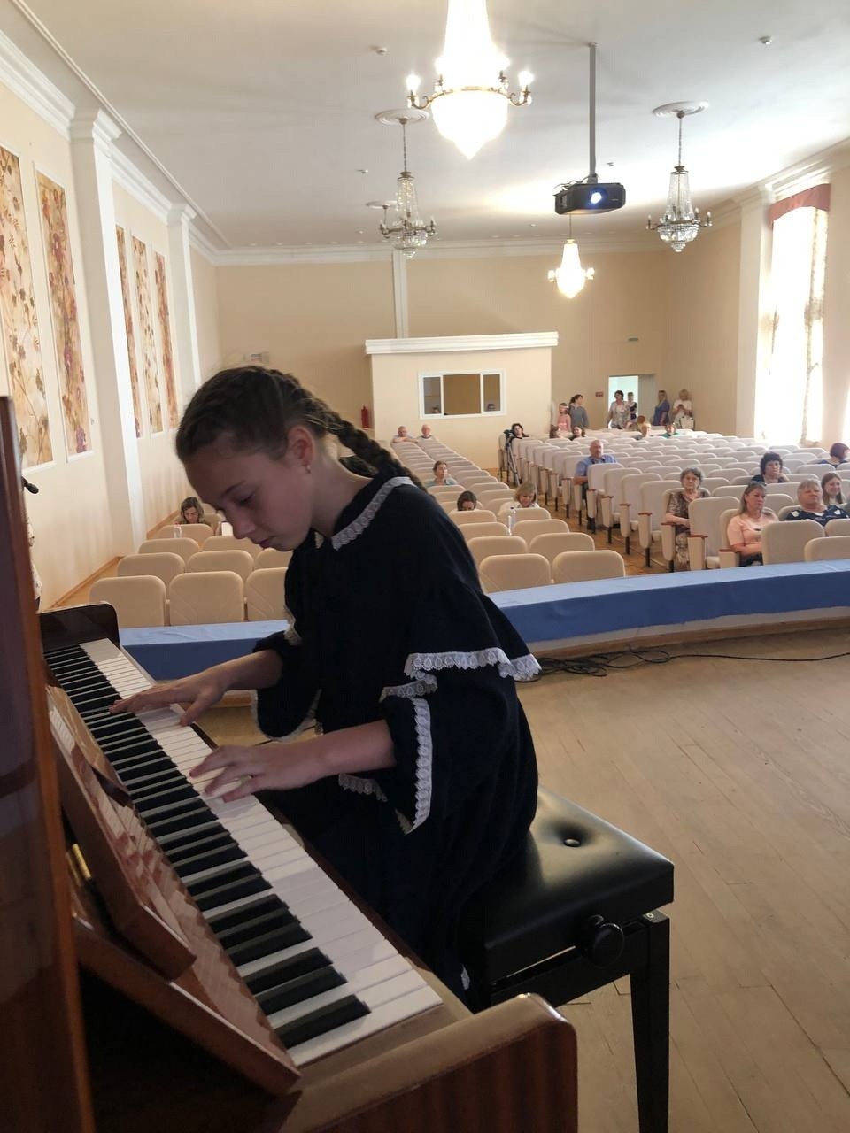 А пока юные музыканты демонстрировали свое искусство, в фойе проходила выставка монет от Банка России, посвященных искусству. Гостей приветствовали Петр Ильич Чайковский и две прекрасные дамы, роли которых исполнили бондарские восьмиклассники.