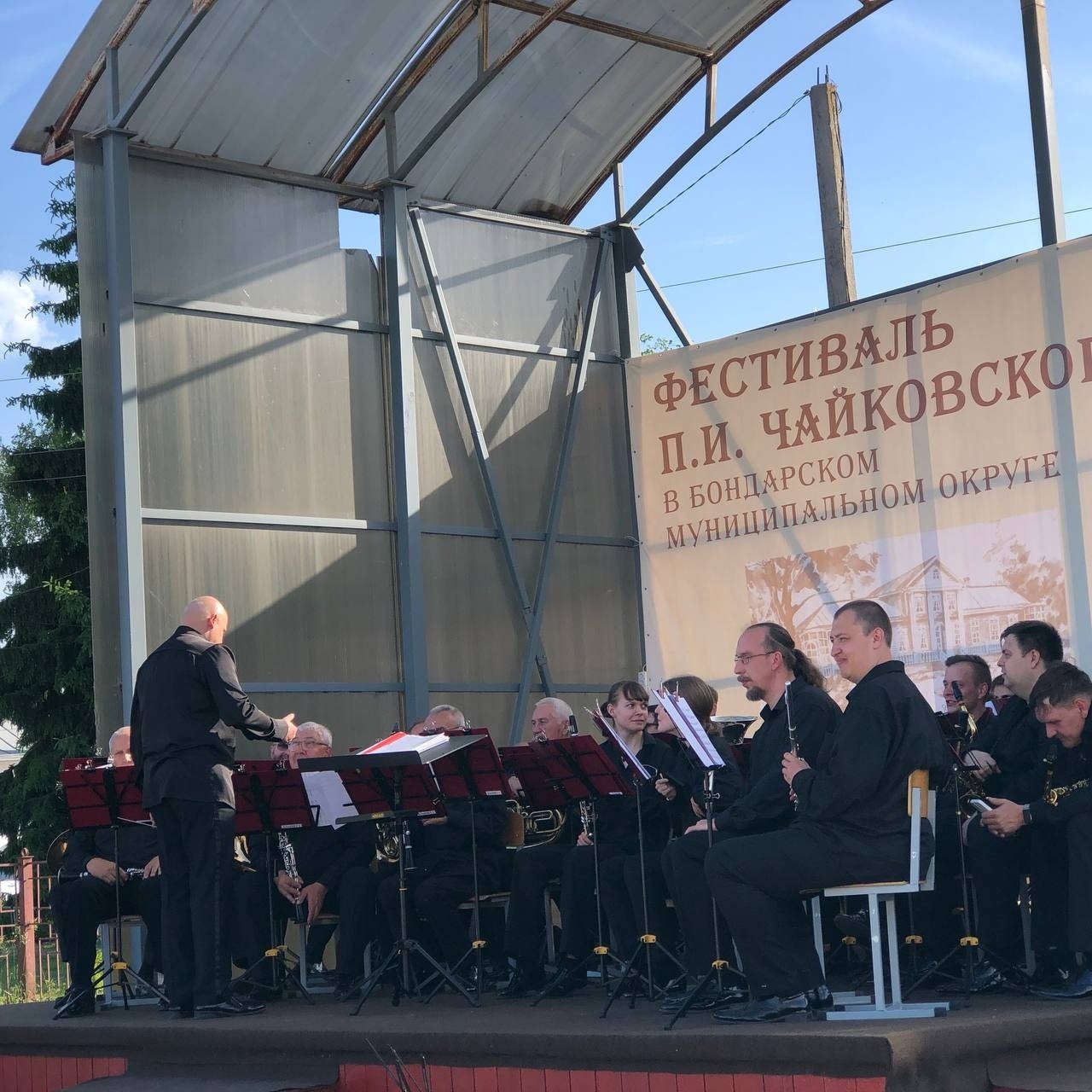 После награждения лауреатов конкурса «Хрустальный шар» действие фестиваля переместилось на уличную сцену, где губернаторский духовой оркестр готовился к выступлению.