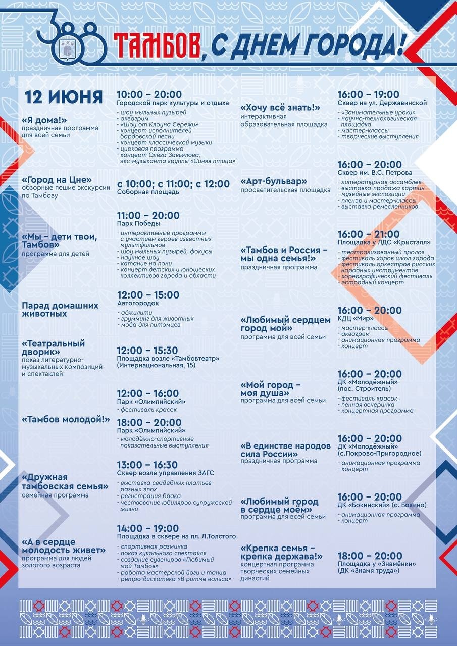 В Тамбове опубликовали подробную программу празднования Дня России и Дня города, которое состоится в наступающую среду, 12 июня (0+).