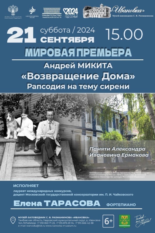 — Летом этого года «Ивановка» стала творческой лабораторией для композитора Андрея Микиты. Размышляя об исторических процессах, жизни, чести, долге, осмысливая темы, неизменно основополагающие для русской культуры, в числе которых — подвижничество, просветительство, самопожертвование, созидание, возрождение, сохранение памяти, в благословенной тиши усадьбы композитор создал пьесу «Возвращение Дома», — отметили в музее-заповеднике Сергея Рахманинова «Ивановка».
