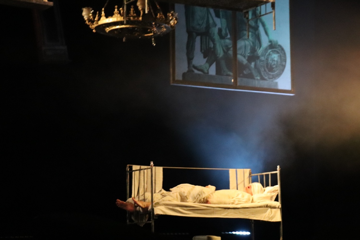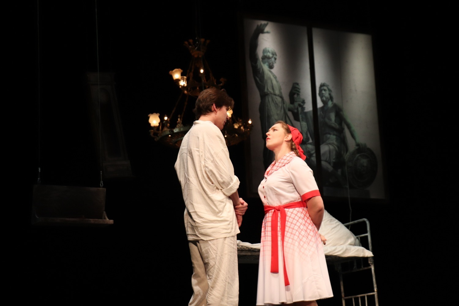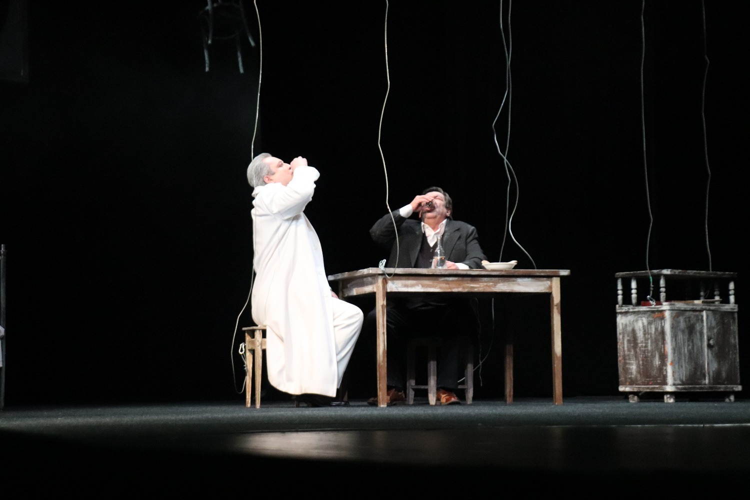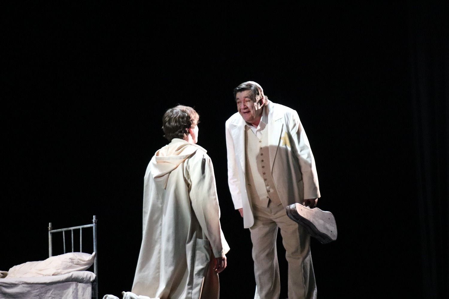 Абрам Шварц невероятно счастлив за своего единственного сына. Он, наконец, собрался и приехал к нему, привёз ему большую сумму денег. Но в ответ — истерика! Как ты мог так опозорить своего сына? Тульчинский «король Лир» с его грязным, мешковатым костюмом, неграмотной речью и невоспитанностью противен блестящему студенту. И этот момент осознания — один из сильнейших в спектакле. Абрам осекается, ему неловко, он просится переночевать у Ханны. Но даже в эту секунду — ни капли злобы или раздражения. Лишь кроткая родительская любовь, всё понимающая.