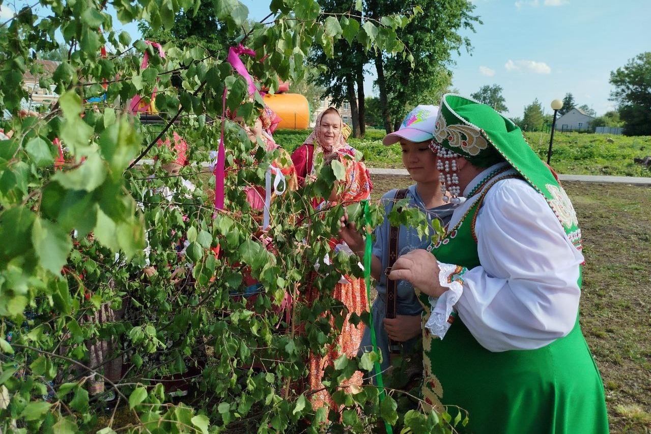 Символом Троицы с древности считается белая берёза. Её украшали лентами, вокруг дерева водили хороводы, пели обрядовые песни. Именно с хоровода у берёзы начался фестиваль. Под народные песни участники показали древний обряд «Кумление»: люди троекратно обнимались, кланялись друг другу и договаривались жить в мире и согласии.