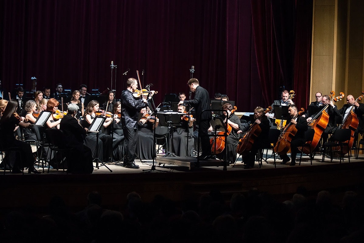 В первой части прозвучал концерт для скрипки с оркестром ре мажор, солировал концертмейстер Большого Симфонического оркестра имени П. И. Чайковского Сергей Костылев. Причём играл он на скрипке знаменитого итальянского мастера Паоло Гранчино из государственной коллекцией уникальных инструментов.