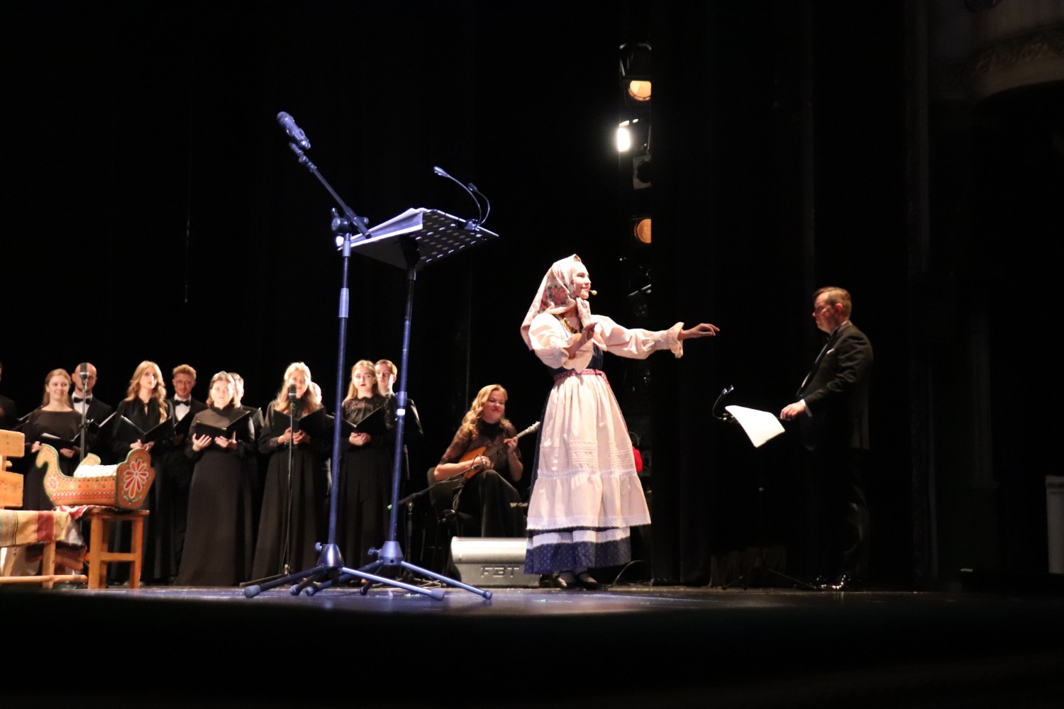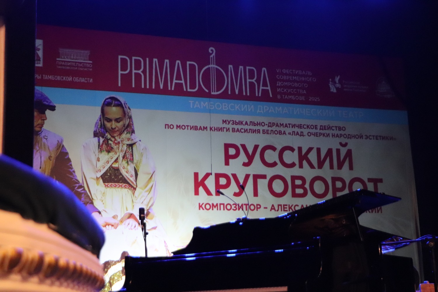 Художественное слово и ненавязчивое актерское мастерство переплетались с пронзительными народными песнями, звуками домры и фортепиано. Композитор Александр Чайковский специально для «Русского круговорота» написал музыку. Он выбрал стихи о временах года среди произведений русских поэтов: Есенина, Фета, Тютчева, Блока, Пастернака — «Ненастье» (0+), «Рождество» (0+), «Молитва сеятеля» (0+) — и написал на них музыку: хор и домра, хор и фортепиано, хор, а капелла. Потом к постановке пригласили присоединиться вокалистку Юлию Рыжинскую, тесно связанную с миром народного вокала. Юлия Рыжинская исполнила народные песни «Шел мой милый бережком» (0+), «Экой Ваня» (0+), «Недозрелая калинушка» (0+), частушки «Деревенские» (0+). А на экране позади артистов — старинная хроника и кадры современной тамбовской деревни, соединяющие прошлое и настоящее.