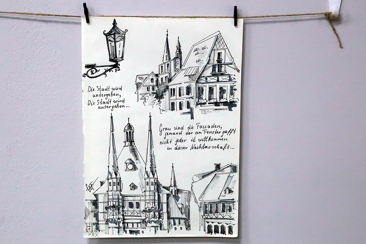 — Я с детства любила путешествовать, а особенно много интересных поездок пришлось на период обучения в старших классах и университете. Тогда я первые посетила множество городов в России и за рубежом, и много рисовала в дороге. Отсюда и возникло название экспозиции «Монолог странствующего художника», а практически все работы, представленные на выставке, были нарисованы с натуры. В основном это камерные пленэрные зарисовки в смешанной технике, гуашью, маркерами для скетчинга, линерами и тушью, — рассказала Екатерина Сертакова.