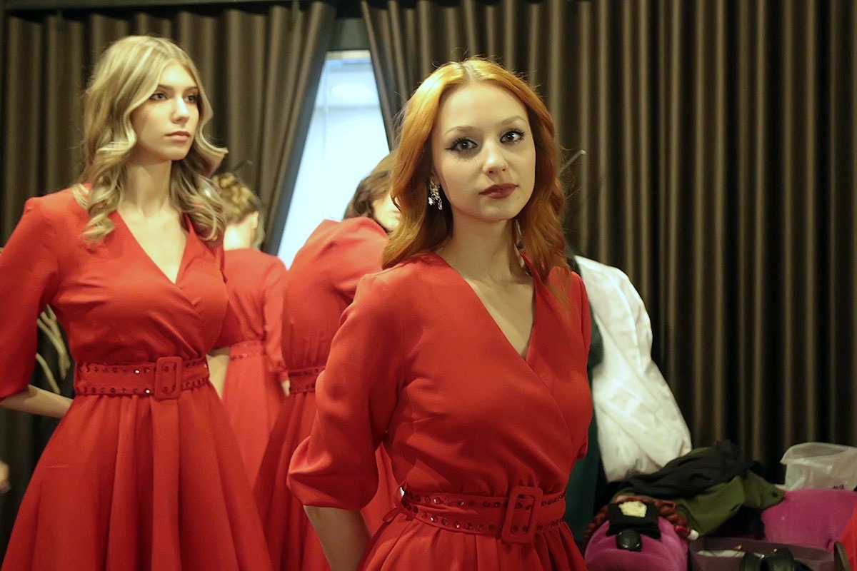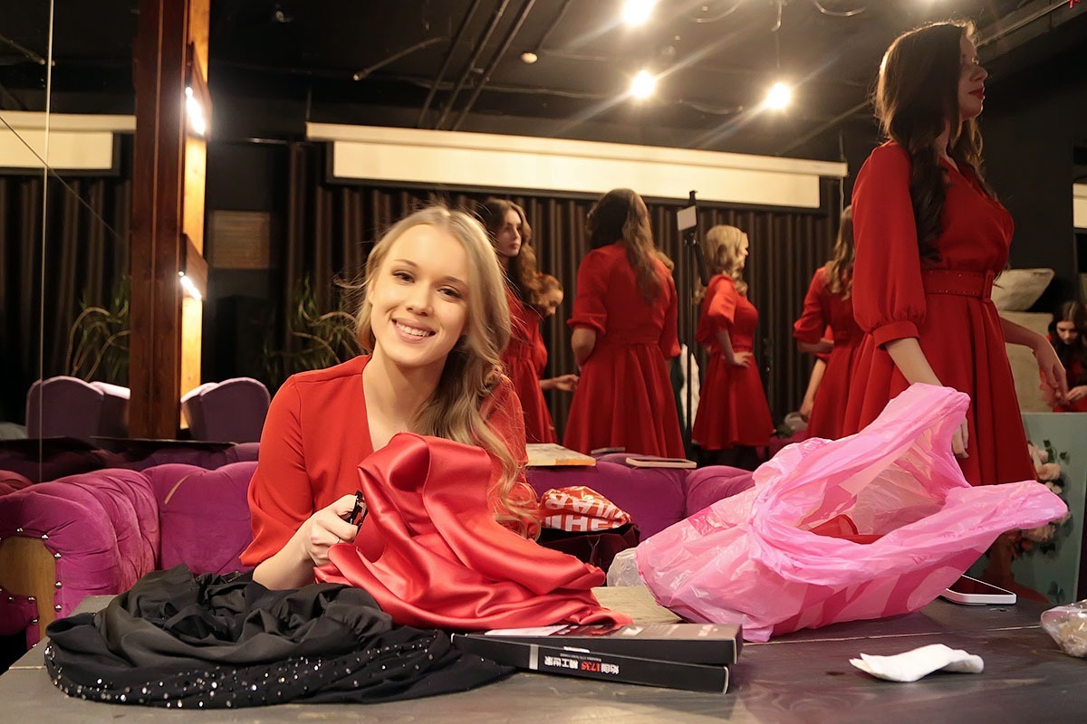 Особенной частью стал показ готового платья от Полины Разживиной. Линейка называется: «Сияй». И это ничуть не преувеличение. Кстати, Полина до начала конкурса сидела в примерке если не с иголкой и ниткой, то точно с ножницами. И что-то там мастерила, не теряя времени даром.