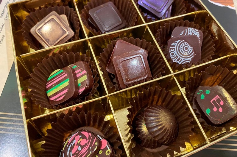 Так, «Тройке» (0+) Георгия Свиридова соответствовал шоколад из венесуэльских какао-бобов с вишнёвыми нотами и горьковатым послевкусием — отсылкой к пушкинской эпохе. Первая часть «Шехерезады» Римского-Корсакова — «Море и Синдбадов корабль» (0+) — воплотилась в шоколаде с восточным характером: нотами корицы, кардамона, бергамота и крупинками морской соли.