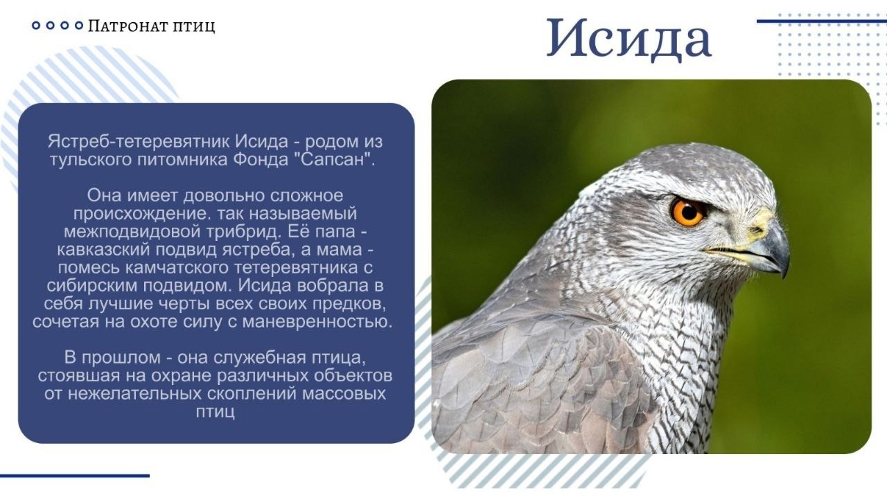 В Тамбовской области стартовал новый эко-благотворительный проект «Хранители птиц»/«Патронат птиц» (0+). Все неравнодушные жители региона смогут взять под опеку пернатого из Мичуринского Центра охраны хищных птиц.