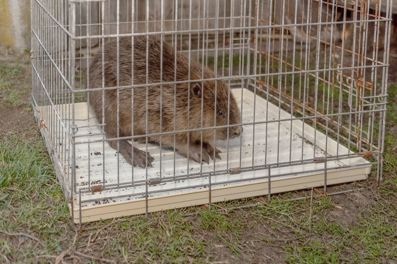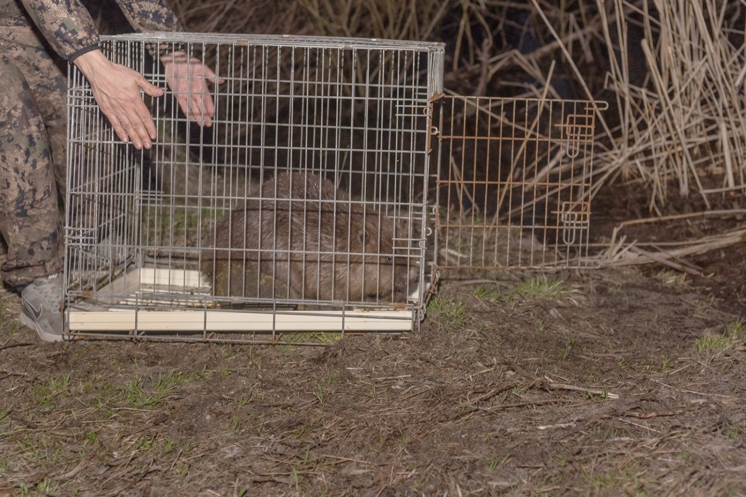 Бобра поймали, поместили в клетку и привезли на берег водоёма. Там его выпустили на волю.