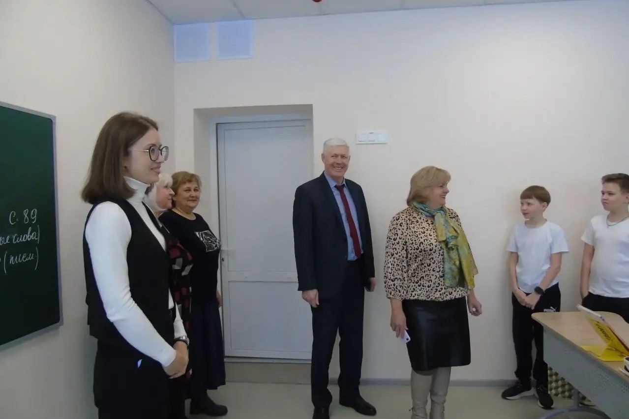 Обновлённую школу посетил временно исполняющий полномочия руководителя муниципальной исполнительной власти округа Евгений Буренин. Вместе с заместителем главы администрации округа Галиной Кулюкиной и начальником профильного отдела Светланой Шигаевой он встретился с педагогами и пообщался с учениками.
