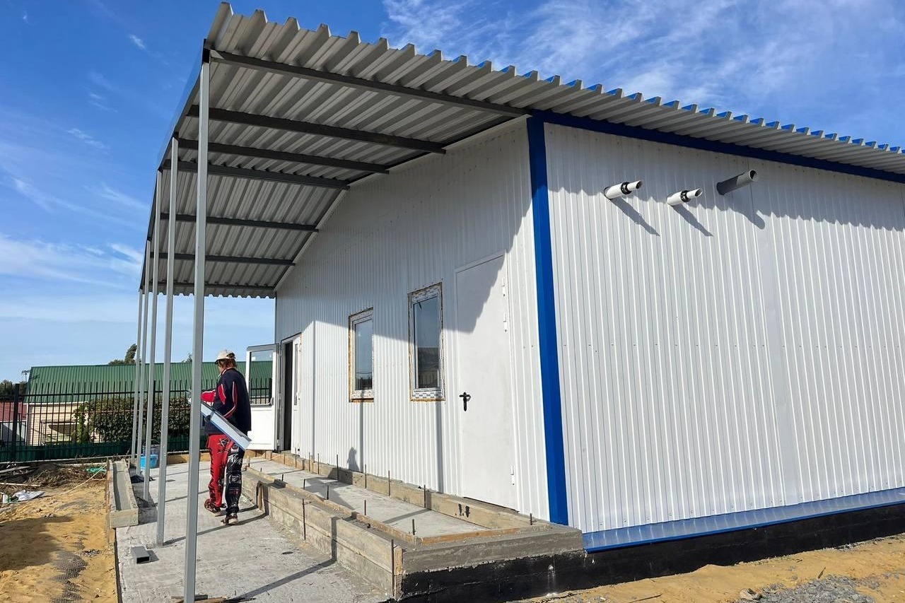 В селе Пушкари Тамбовского округа продолжается строительство нового фельдшерско-акушерского пункта. Сегодня здесь возведены и закреплены на фундаментной плите модули здания, идёт монтаж кровли, при этом тщательно подбираются все необходимые материалы. Внутри завершена обшивка стен, заделаны межпанельные швы, установлены окна и двери.