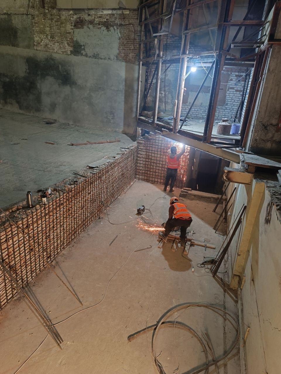 Кроме того, выполнили 8,7 кв.м кирпичной кладки для устранения ниш и простенков, которые утратили актуальность при реконструкции. Также проводились работы по изготовлению объёмных каркасов под монолитные участки (5,17 кв.м).