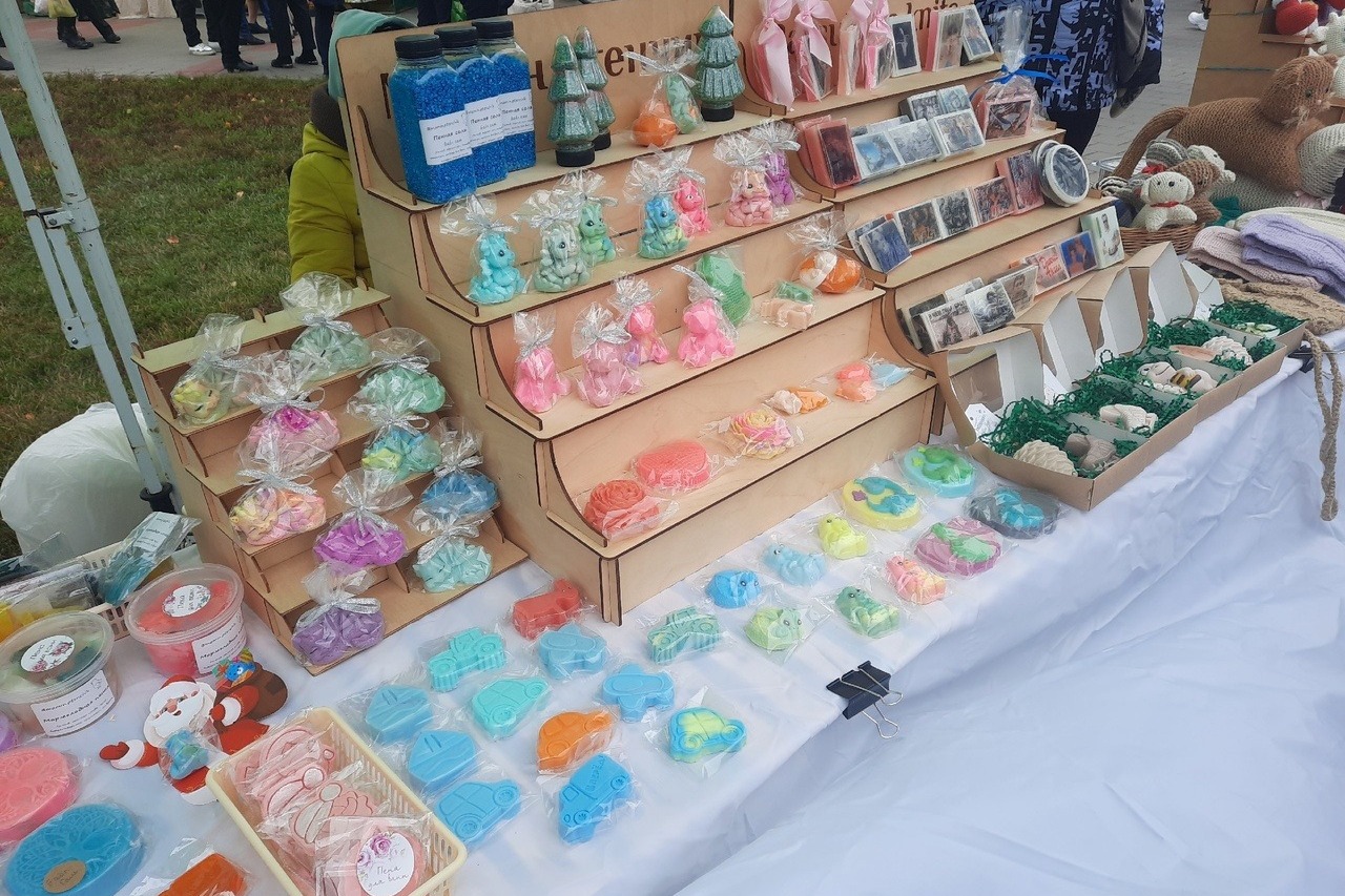 — На выбор: шарики в чёрном молотом перце, копчёной паприке, прованских травах и пажитнике. Мы работаем уже с 1994 года, предлагаем продукцию из коровьего и козьего молока. Раньше участвовали в Покровской ярмарке, теперь решили принять участие здесь, — поделилась Елена Камнева.