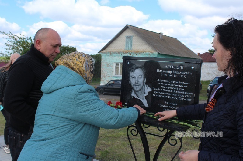 В мемориальном комплексе села Чуево-Алабушка Уваровского округа разместили доску памяти старшего сержанта Владимира Алёшкина. Как сообщается на сайте газеты «Уваровская жизнь», старший сержант мотострелковой роты погиб 10 ноября 2022 года в Макеевке Донецкой области при выполнении военных задач. Посмертно награждён орденом Мужества.