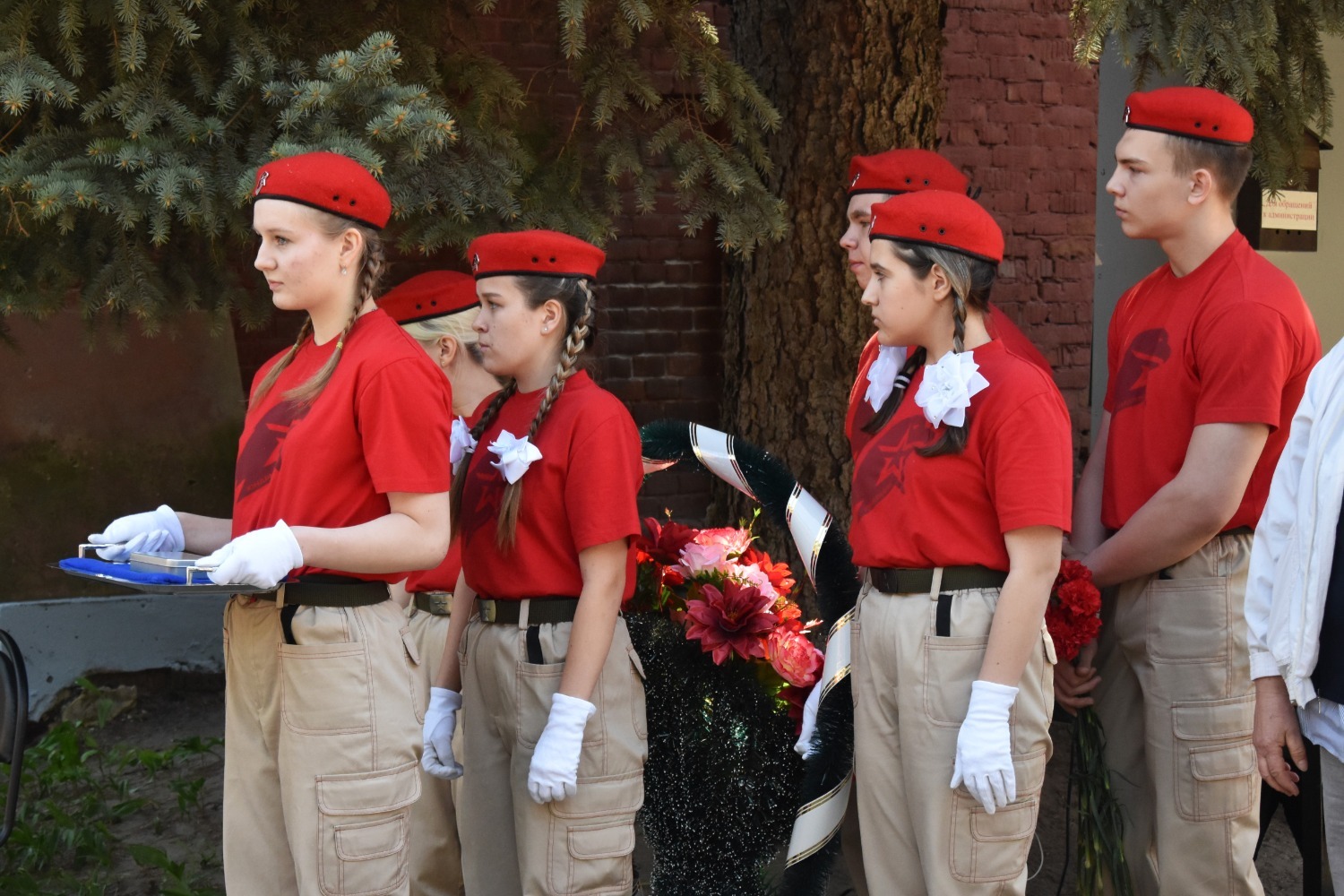 Юнармейцы и руководитель завода захоронили прах тамбовского фронтовика Николая Никольского у монумента погибшим участникам войны на территории завода.