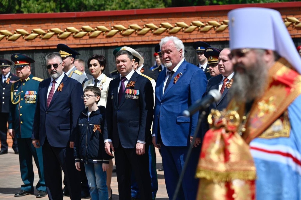— На Воздвиженском кладбище у мемориального комплекса «Скорбящая мать» митрополит Феодосий провёл панихиду по всем погибшим в Великой Отечественной войне и в ходе специальной военной операции. Их память также почтили минутой молчания. Ещё раз поздравляю всех с нашим главным праздником — с Днём Победы, — отметил руководитель региона.