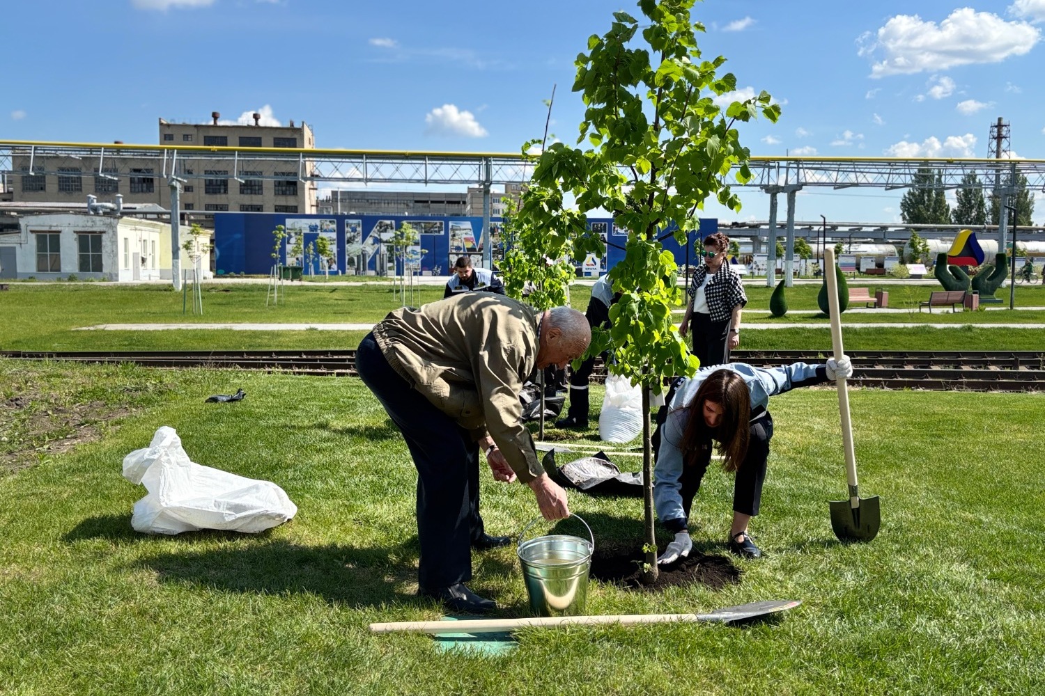 В юбилейном сквере высадили 10 именных лип в память об участниках Великой Отечественной войны, которые трудились на заводе.