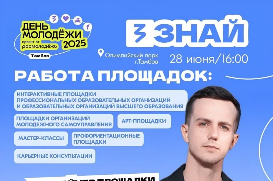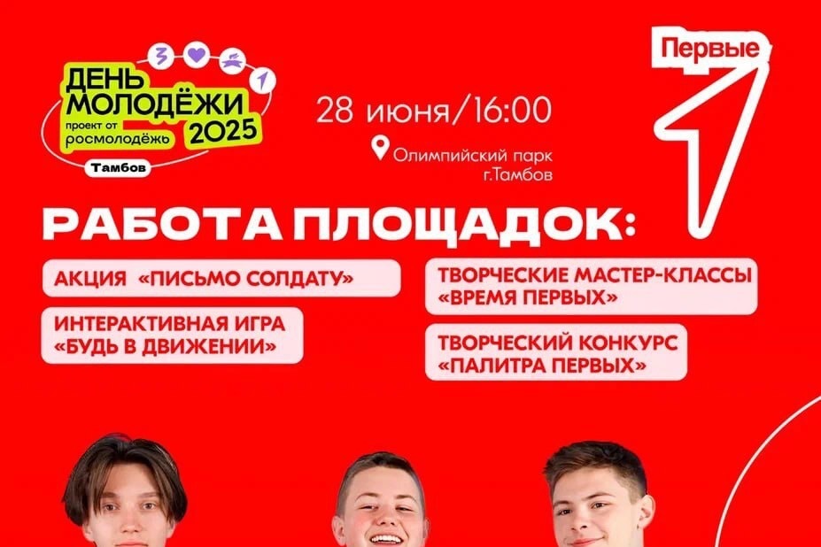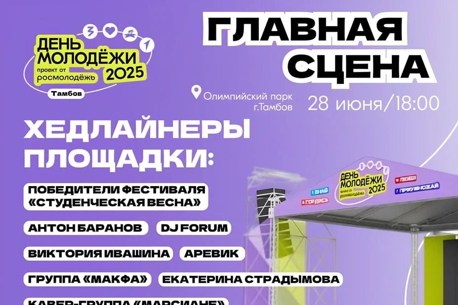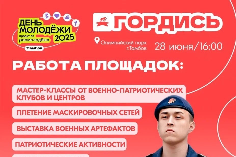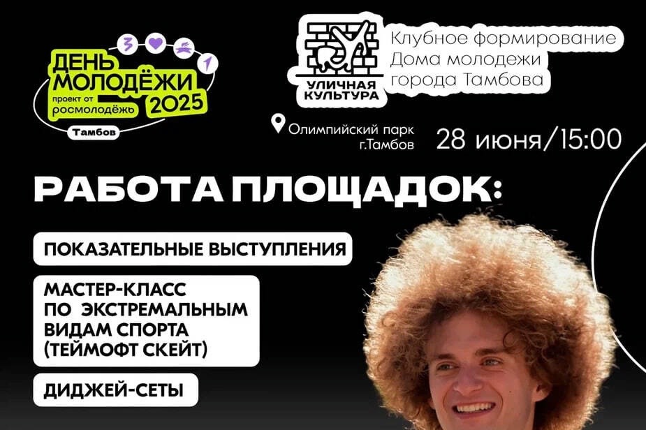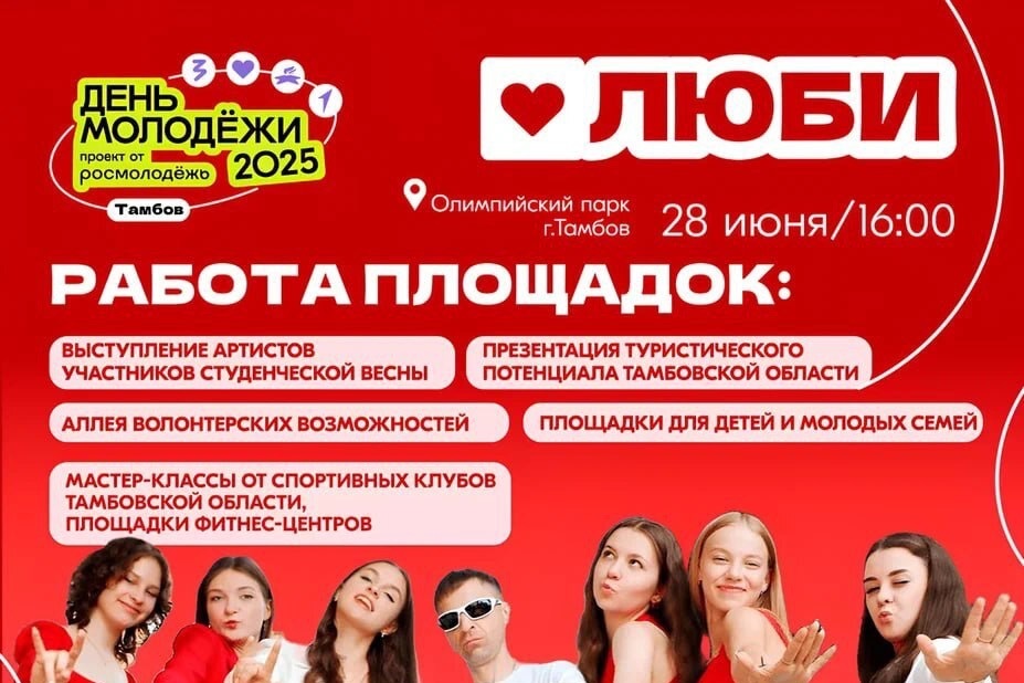 В Тамбове представили подробную афишу празднования Всемирного дня молодёжи (0+), который в этом году состоится 28 июня. Главной площадкой мероприятий станет Олимпийский парк, где на 7 гектарах развернутся более 100 площадок для самореализации и творчества молодёжи.