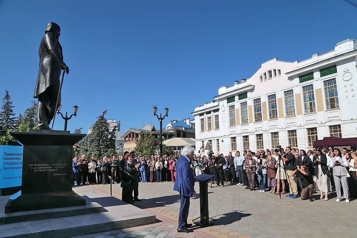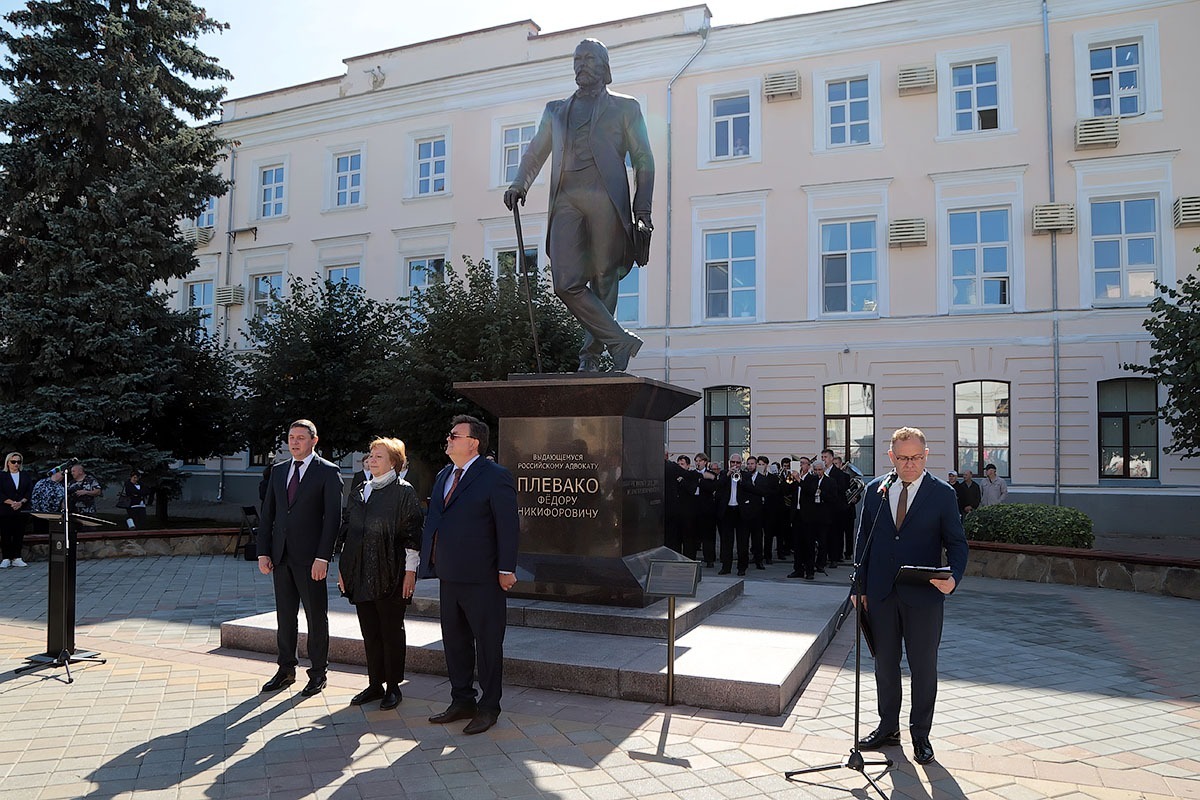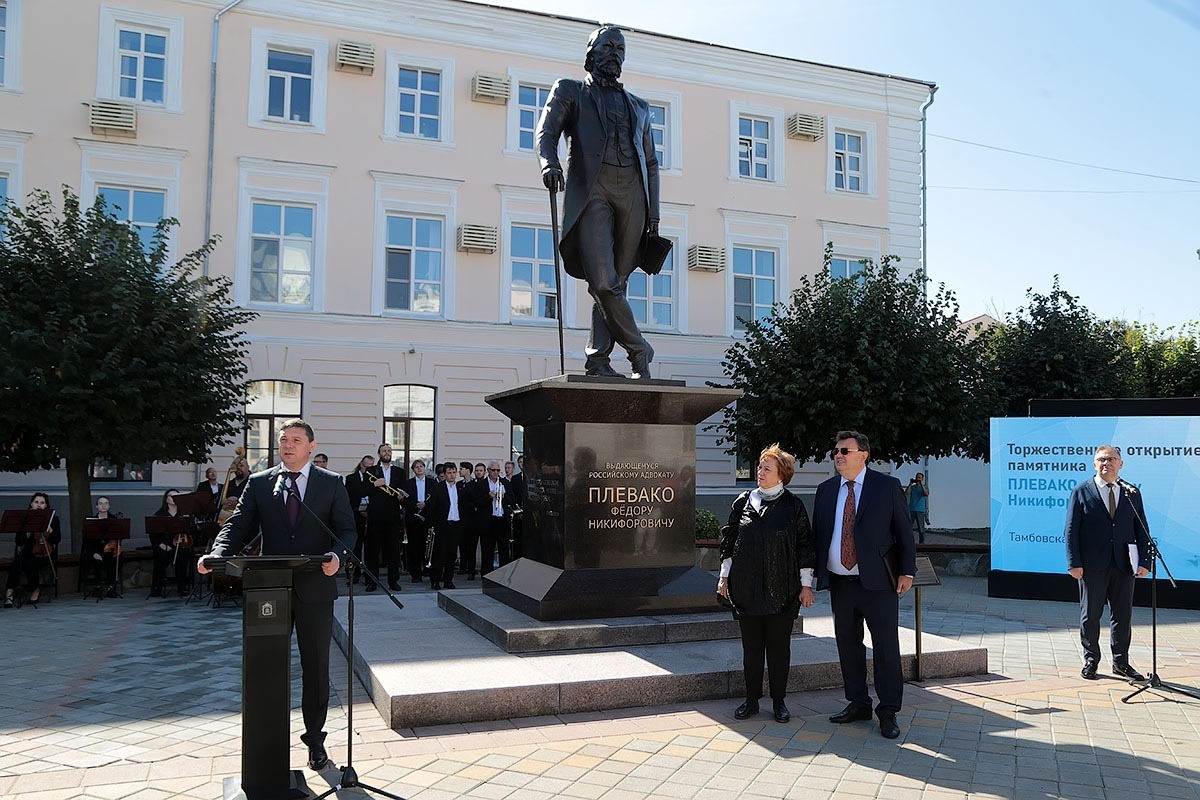 В Тамбове в четверг, 11 сентября, состоялось торжественное открытие памятника прославленному адвокату и общественному деятелю начала прошлого века Фёдору Плевако. Специально на церемонию открытия приехал министр юстиции России Константин Чуйченко и звёзды адвокатского сообщества страны — президент Федеральной палаты адвокатов Светлана Володина, первый вице-президент адвокатской палаты столицы Генри Резник, потомки Фёдора Плевако из Москвы и Нижнего Новгорода.