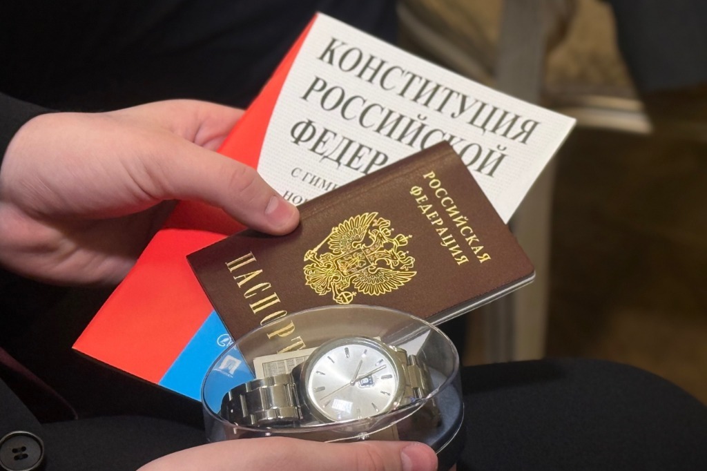 Вместе с паспортом ребята получили экземпляр Конституции России и памятный подарок от главы региона.