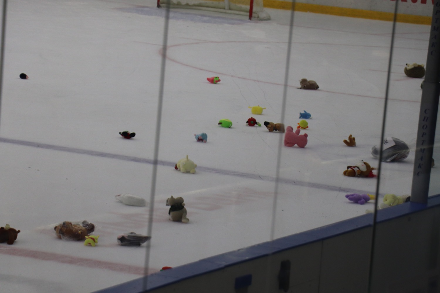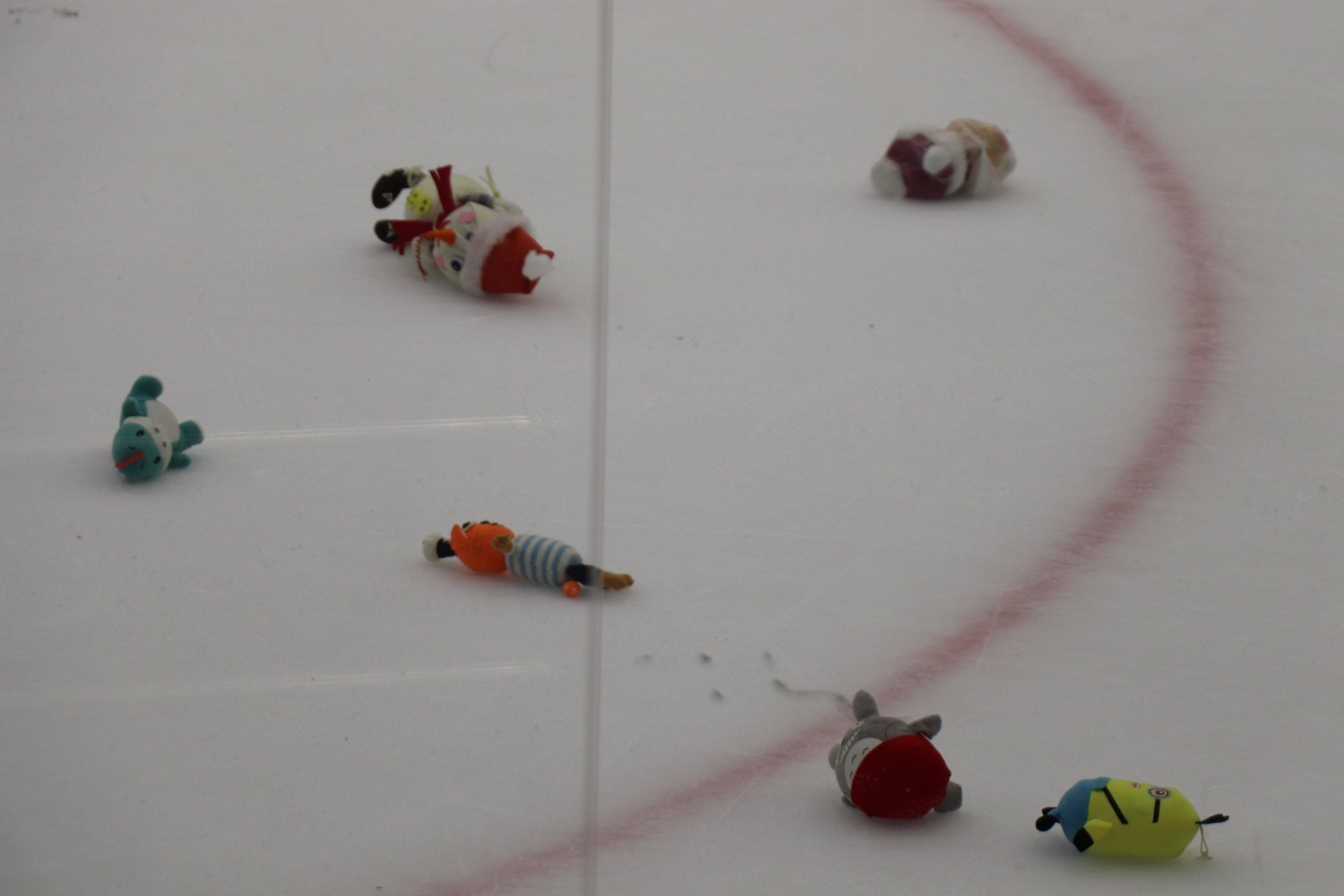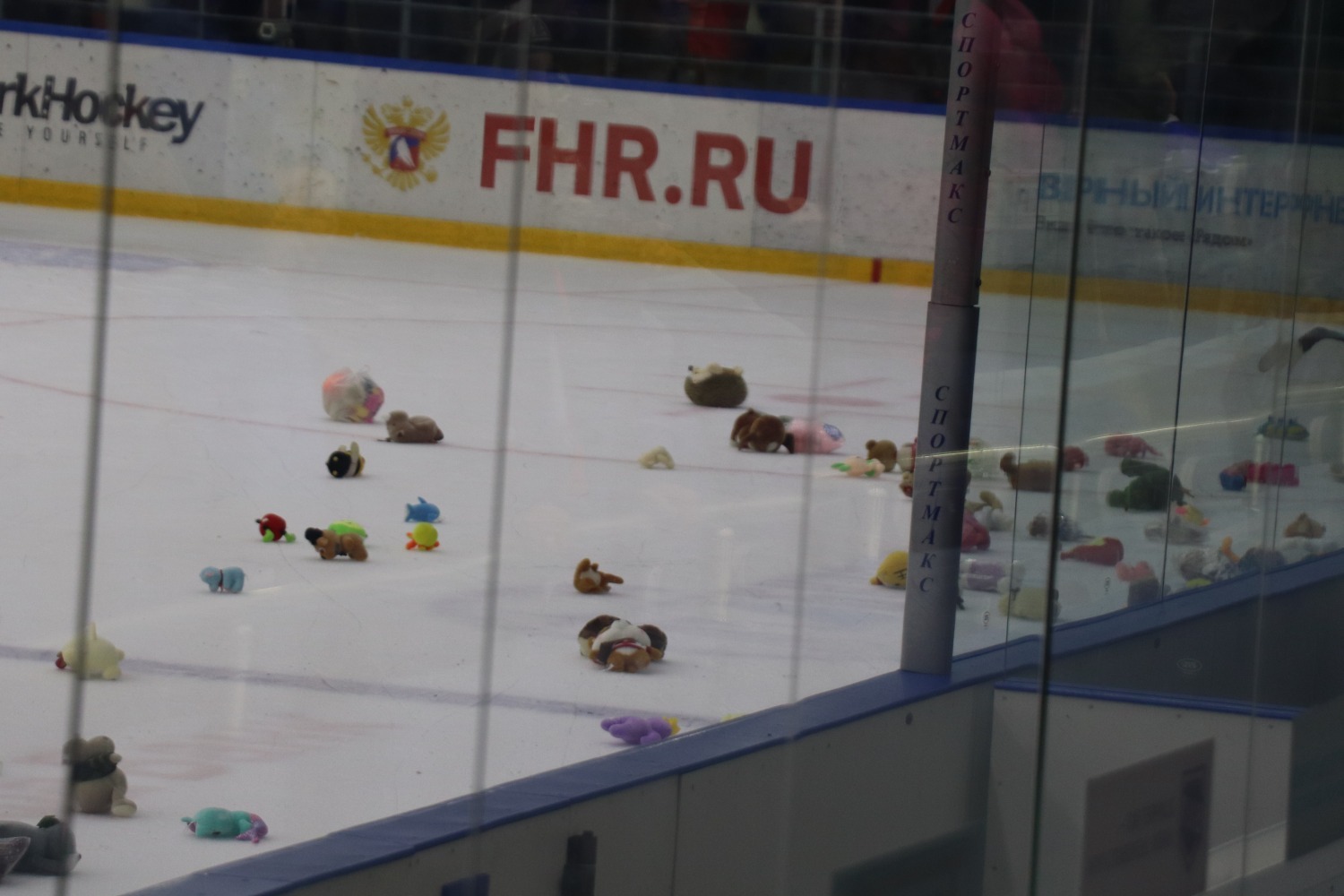 После финального свистка зрители, не дожидаясь команды диктора, выбросили на лёд мягкие игрушки, которые принесли с собой. Их отправят в благотворительные учреждения для детей.