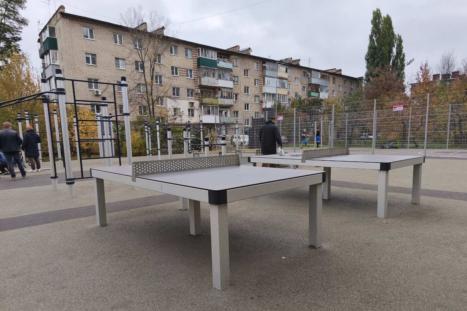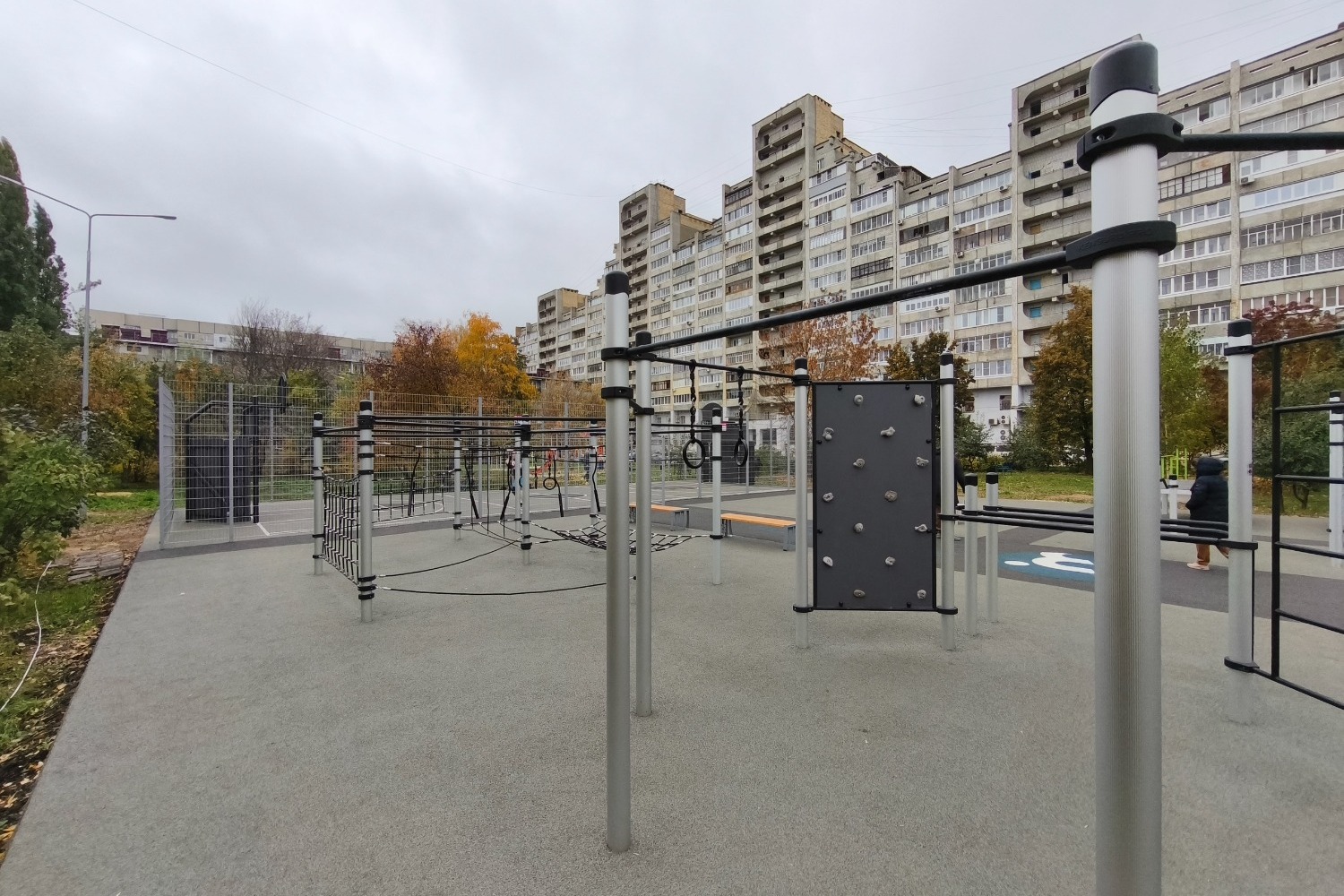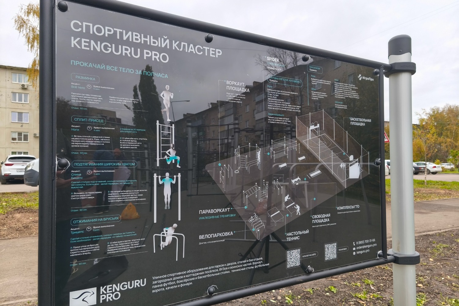 На территории уличной площадки установили информационный стенд с программой тренировок «Тренировка за 30 минут». Также здесь оборудовали велопарковку.
